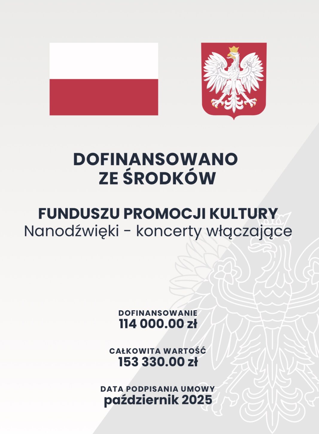Innowacyjny program NANODŹWIĘKI- koncerty włączające ma na celu rozszerzenie i podniesienie kompetencji muzycznych w grupie osób z niepełnosprawnościami. oraz zapewnienie im komfortowego odbioru muzyki na żywo podczas specjalnie przygotowanych koncertów.
